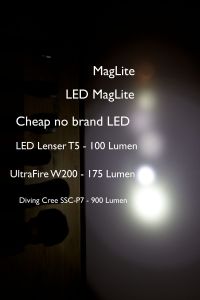After some reading I ended up with an UltraFire W200 and a Diving Cree SSC-P7. My conclusion so far is like most people that have done some flashlight research. The way the vendors measure Lumen must be completely different from each other. The 175 Lumen UltraFire is extremely bright and much brighter than my existing 100 Lumen LED Lenser T5. And the Diving Cree SSC-P7 that is supposed to be 900 Lumen is by far the brightest, but not at all 900 Lumen if they measure the way UltraFire ends up with 175 Lumen for the W200.